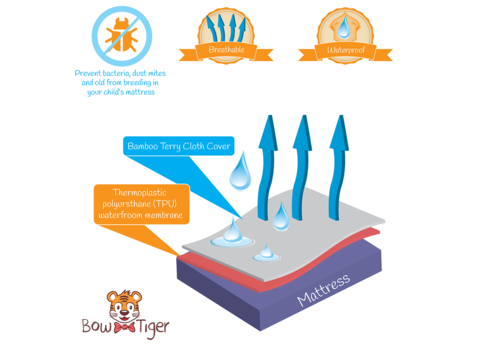 BREATHABLE & SAFENON TOXIC Antibacterial Cover that Prevents bacteria, dust mites, bedbug and mold from breeding in your child's mattress. BEST mattress cover for keeping your baby dry and asleep and for assuring your beauty-rest. |